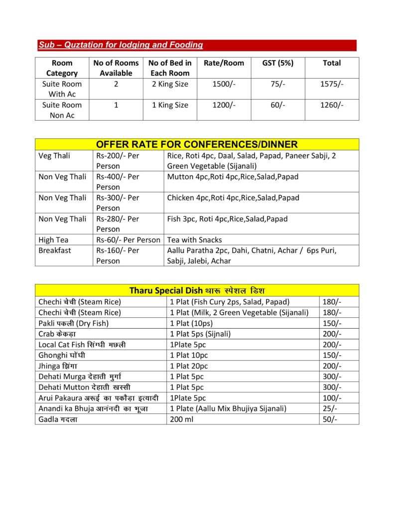 Tharu Home Stay & Fooding Charges